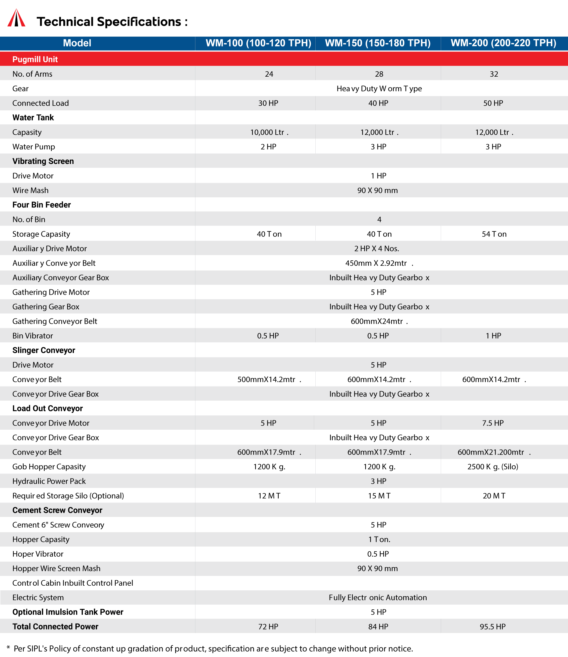 WMM plant is used for base & Subbase of road At Starting Of any road projects or during widening roads. Our plant is designed and made with focus in mind to make it best suitable to Indian customers & Indian site conditions of all over country. The plant is as per IRC technical specifications by MoRTH of government of India.